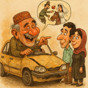 روز بعد، اسنپِ قراضهای سراغم آمد که پیرمردِ راننده، جای ایستادنِ من و همسرم را پیدا نمی کرد…کاشف به عمل آمد که اهل اینجا نیست و از ییلاقات کوهستانی و خوش آب و هوای بجنورد برای مراسم عروسیِ یکی از بستگانش به حاشیهٔ مشهد آمده و معلوم شد که هنوز در روستایشان مراسمهای عروسی به سبک قدیم، دوسه روز طول میکشد و دلخور از این بود که در شهرها و تالارها دو سه ساعته مراسم تمام میره!!