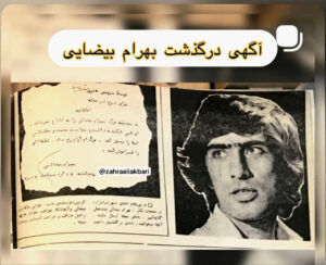 عادت داشتم روزنامه را باز کنم و صفحات آنرا تورقی کنم و اگر مطلبی و خبری از فردین و ملک مطیعی داشت را با ولع بخوانم. زندگی کردن در شهری که سینما نداشت انگار جهنمی بود شبیه به زندگی. من صفحات روزنامه را ورق می‌زدم تا می‌رسیدم به صفحهٔ اگهی‌های ترحیم و تسلیت. ناگهان چشمم افتاد به آگهی ترحیمِ بهرام بیضایی. روزنامه را دو دستی بر سرم کوبیدم و های‌های گریه کردم. گریه کردم، اشک‌هابم ریخت و در میان هق‌هق زدن‌ها، برای دوستانم گفتم که چه کسی را از دست داده‌ایم.