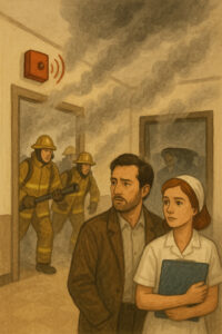 ما خجالتزده و شرمنده، از دستیارانمان خواستیم چراغها را خاموش کنند و تیم تولید به کمک ترجمهٔ همزمان همکار جدیدمان عذر خواهی فراوان کرد. ظاهرا سنسور دود در هر یک از اتاقهای بیمارستان مستقیم به ایستگاهِ آتش نشانی محل، ارتباط داشت و خبرشان کرده بود. گروه آتشنشانان بعد از اطمینان از نبود خطرِ آتشسوزی، از بیمارستان به محل کارشان برگشتند.