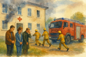 در شرایطی که مشغول دود کردن سیگار و نوشیدن قهوه بودیم و از شما چه پنهان داشت خوش میگذشت، از دور صدای آژیر به گوشمان رسید که نزدیک و نزدیکتر میشد. چنان نزدیک که انگار همین بغل هستند! ماشینهای آتش نشانی یکی بعد از دیگری به بیمارستان نزدیک میشدند. نه تنها نزدیک شدند، بلکه داخل هم آمدند و افراد یک راست به طبقه دوم دویدند و به سمت اتاقی که محل استقرار ما بود رفتند. درِ اتاق را باز کردند و با پروژکتورهای ما که همچنان روشن و در حال دود کردن بودند، مواجه شدند. اتاق پر از دود و گرما شده بود.