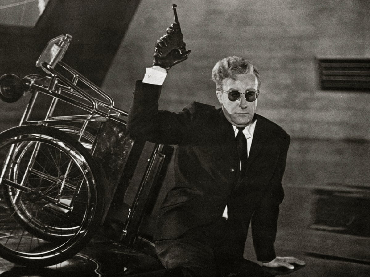 پیترسلرز کاراکترِ این دانشمندِ مضحکِ اتمیِ با سابقهی حزب نازی را دارد که مشکلِ دست بیقرار دارد و یک دستش گاهی بر علیه خودش عصیان میکند، گاهی گلوی خودش را میفشارد و گاهی به خودش سلامِ نازی میدهد! این دانشمندِ آلمانیالاصل در آمریکا زندگی میکند، روی ویلچرش نشسته و در جلسهای اضطراری، با حضورِ سرانِ ارتشِ امریکا، برای کنترلِ این بمب افکنِ اتمی، که اشتباهی فرمانِ حملهی اتمی را دریافت کرده، حضور دارد. لحن حرف زدن و لهجهی او ترکیبی از آلمانی و روسی و خنده دار است…»