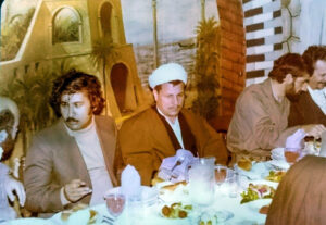 دربینِ مقامهای همراهِ هیئت سرهنگ نامجو وزیر دفاع و محسن رضایی، با لباسِ سبزِ سپاه و اسلحهی کمری، معمولا گوش به رادیو بود. رادیوهای ترانزیستوری سونی ۷موج که اون روزها گیرندگی بسیار قوی داشت و لازمهی گوش دادن به اخبارِ سراسرِ دنیا همین رادیوها بود. محسن رفیقدوست که خیلی راحت با دکمههای باز و زیرپوش و دمپایی، در محلِ اقامت میچرخید و ما ایشان را به شکلِ بانک سیار میدیدیم! همه ظاهرا خاکی و بیتکلف بودند. مقامات لیبی همه سعی داشتند مثلِ ما تشریفات را کنار بگذارند و بیتکلف و ساده، دیدارها را برگزار کنند. آنها خیلی احساسِ نزدیکی میکردند.
