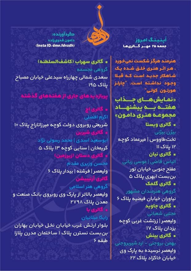 نمایشهای جذاب این هفته به پیشنهاد مجموعه هنری دامون گردآورنده: دامون فدویزاده (Insta ID: dmn.fdvzdh) اشتراکگذاری این: برای اشتراکگذاشتن فیسبوک خود کلیک کنید (در پنجرۀ تازه باز میشود) فیسبوک اشتراک گذاشتن توسط اس ام اس (در پنجرۀ تازه باز میشود) X