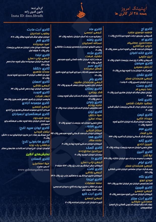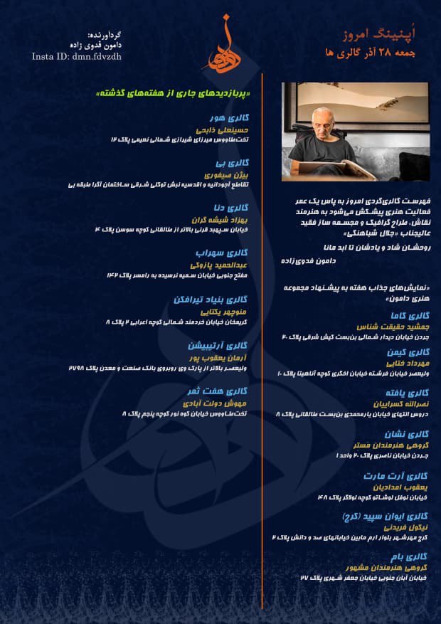 اُپنینگ امروز جمعه ۲۷ آذر گالریها