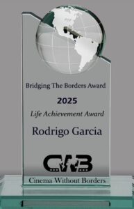 سه‌شنبه، ۲۱ اکتبر، ساعت ۷ عصر، بنیاد «سینما بدون مرز» CWB Foundation در مراسمی در سالنِ زیبایی در شهر سانتا مونیکا، فیلمساز برجسته «رودریگو گارسیا» را به پاس یک عمر دستاورد هنری و نقش برجسته‌ای که در سینمای جهان داشته، با اهدای جایزه‌ٔ معتبرِ (پلیبرفراز مرزها) Bridging The Borders Award مورد تقدیر قرار داد.