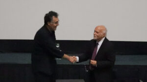 «من مستندساز و یکی از اعضای هیئت‌مدیره‌ٔ بنیاد «سینمای بدون مرز» هستم؛ بنیادی که به همت بیژن تهرانی بنیان‌گذاری شده و هدفش ترویج و حمایت از سینمای بین‌المللی است. مایه‌ی افتخار عمیق من است که امشب در این مراسم ویژه گرد هم آمده‌ایم تا از فیلمسازی تجلیل کنیم که آثارش از مرزها، فرهنگ‌ها و نسل‌ها فراتر رفته‌اند.
