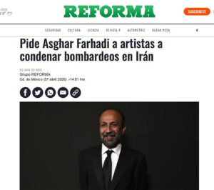 سه شنبه هفته‌ی پیش پیامی را که «اصغر فرهادی» فیلمساز برجسته‌‌ی کشورمان درمورد حملاتِ وحشیانه‌ی دشمن صادر کرده بود، برای چند رسانه‌ی معتبرِ جهانی که با آن‌ها همکاریِ نزدیک دارم، ارسال کردم که با بازتاب‌ها و واکنش‌های بسیار گسترده‌ای مواجه شد و انعکاسِ رسانه‌ایِ وسیعی پیدا کرد. متنِ پیام این بود: